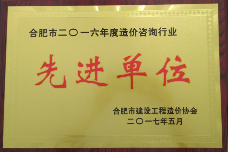近日,合肥市建设工程造价协会第一届二次会员大会在合肥奥体中心召开,会议对协会去年及今年半年的工作进行了总结报告,并对2016年度市先进单位进行了表彰授牌,我公司荣获合肥市2016年度造价咨询行业先进单位。